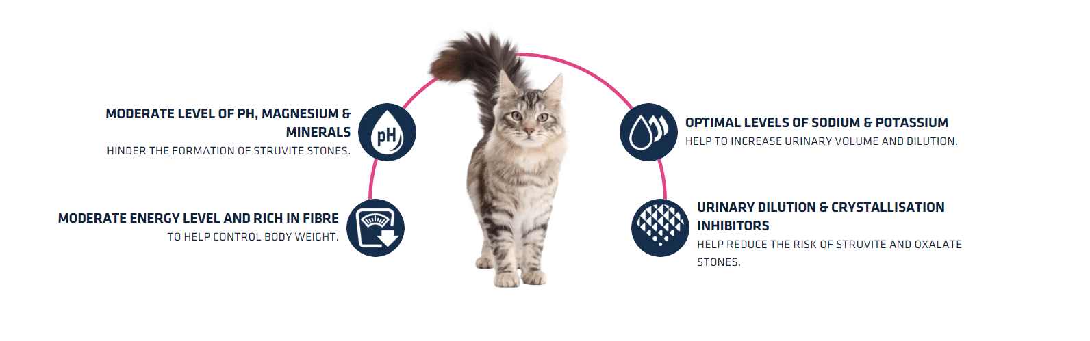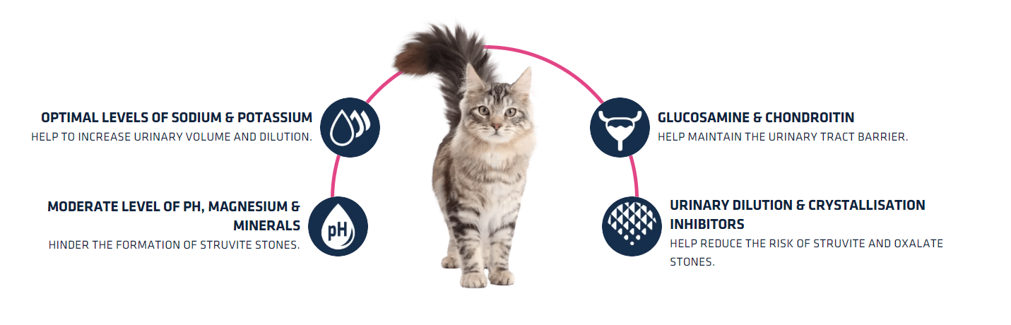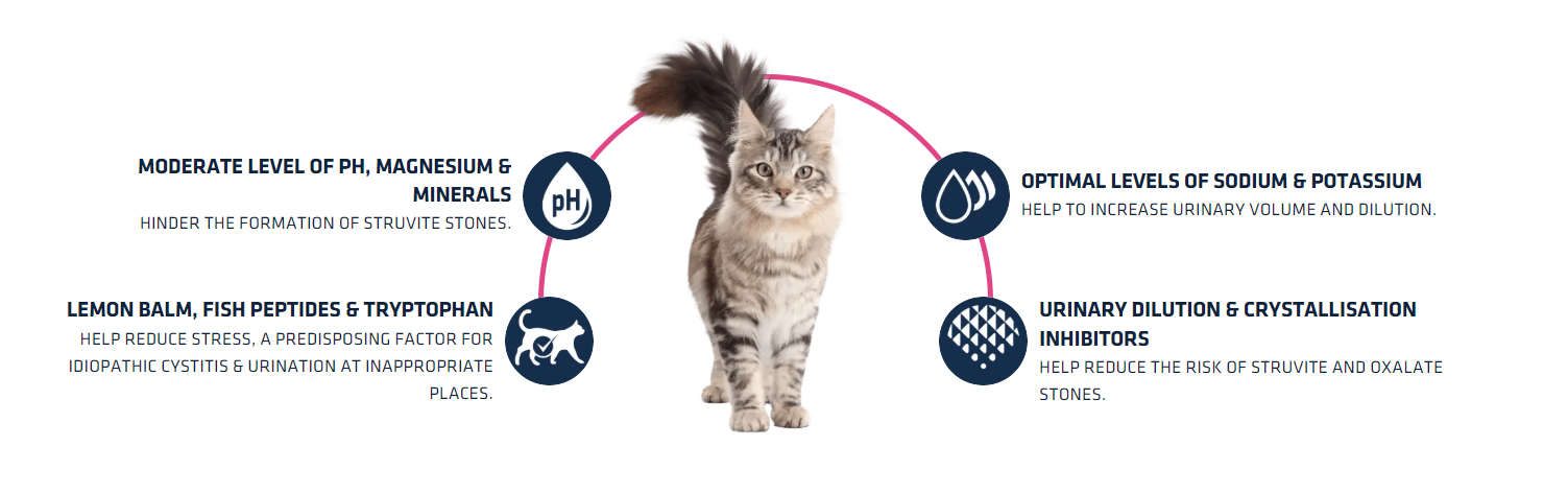 Clear1.25 kg7.5 kgFormulated with a moderate level of magnesium and urinary acidification properties, it is recommended for helping reduce the reoccurrence of struvite and oxalate stones in your cat’s urine. The results of ADVANCE VETERINARY DIETS Urinary Stress are clinically proven: it helps to reduce stress markers, a trigger for idiopathic cystitis in cats, by 54%.* (*) As indicated by the lower urinary tract stress marker. Internal study. The stress marker is reduced in comparison with the control group. We recommend you consult a vet before starting to feed with a veterinary diet.