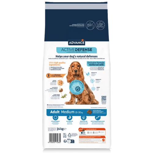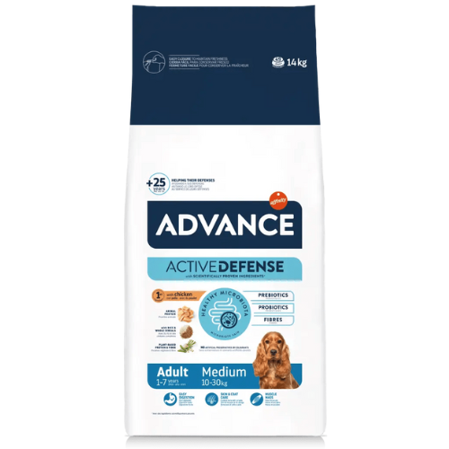 Advance Adult Medium is a high-quality food that is easy to digest and formulated to meet the needs of medium adult dogs. Made with chicken as the first ingredient. Helps to maintain muscle mass, thanks to the level of high-quality protein and contributes to healthy skin and a shiny coat, thanks to omega 3 and omega 6 fatty acids.